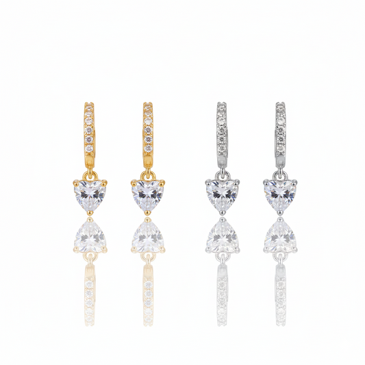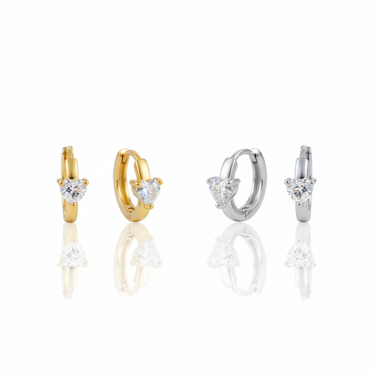 Brinco Argola Click Pedra de Zircônia em Coração Banhado em Ouro 18K