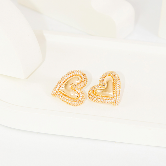Brinco Coração Com Pétalas Texturizadas Banhado