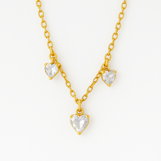 Colar Três Corações Ponto de Luz Banhado em Ouro 18K