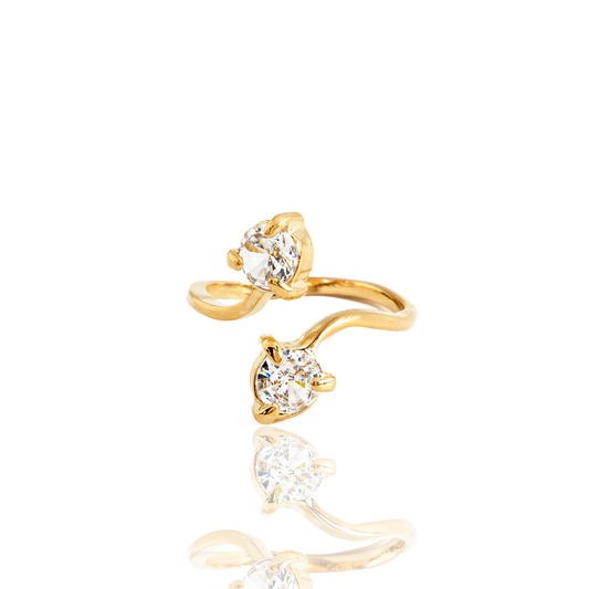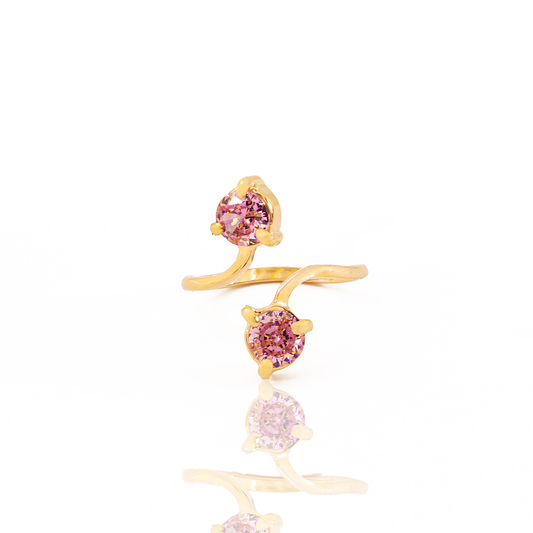 Anel 2 Cristais Artificiais Quartzo Rosa Banhado