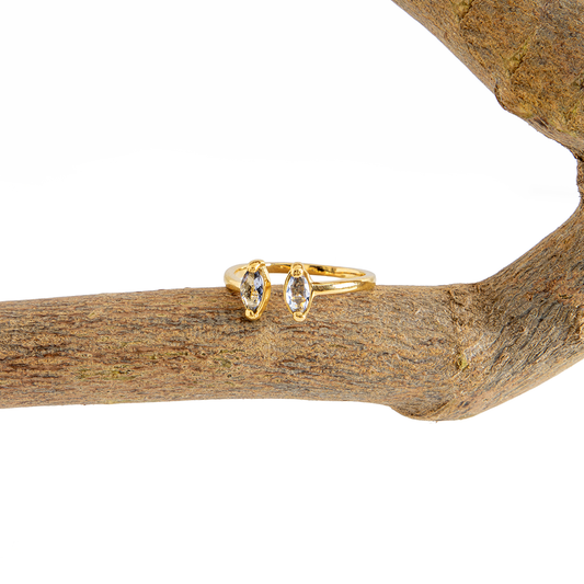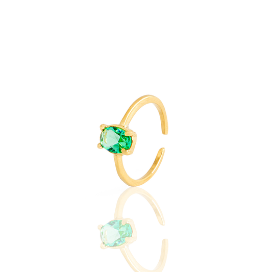 Anel 2 Cristais Artificiais Quartzo Verde Banhado