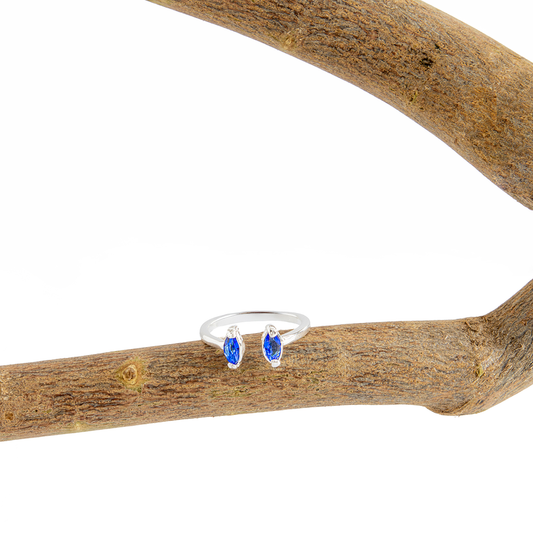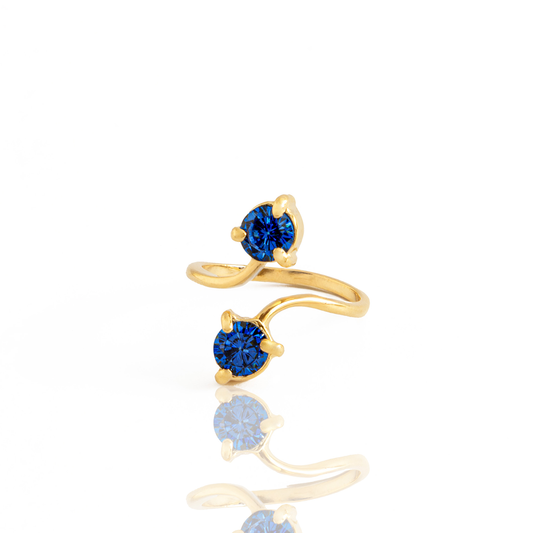 Anel 2 Cristais Artificiais Ágata Azul Banhado