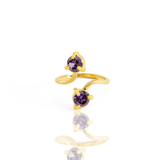 Anel Cristais Artificiais Gota Ágata Roxa Banhado