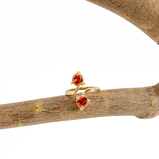 Anel 2 Cristais Artificiais Jaspe Vermelho Banhado
