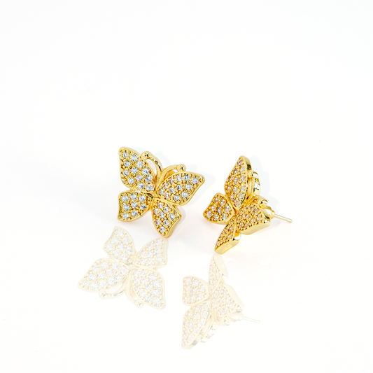 Brinco Borboleta Brilhante Cravejado E Banhado