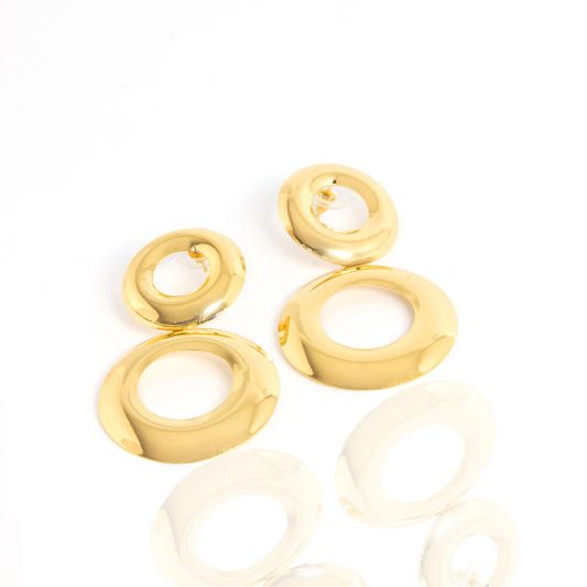 Brinco Duplo Circular Esculpido Metálico Banhado