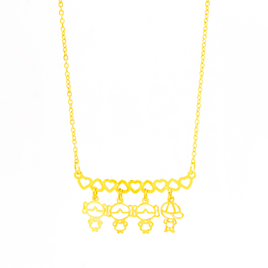 Colar Personalizado Canga Corações e Filho(a) Banhado em Ouro 18k