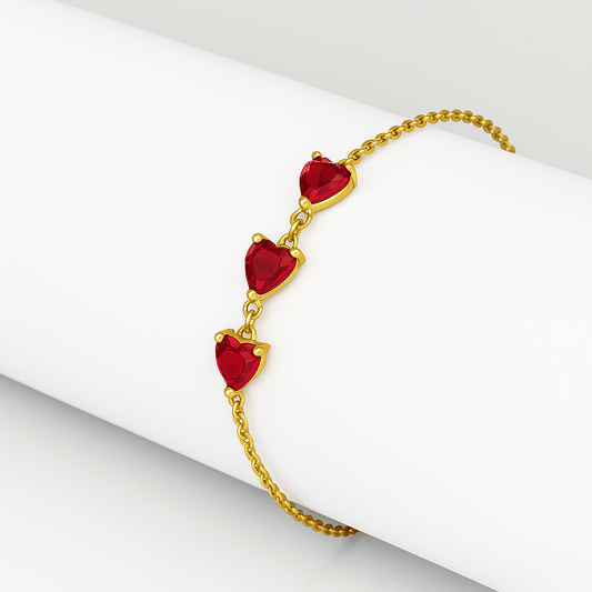 Pulseira Três Corações Ponto de Luz Banhado em Ouro 18K