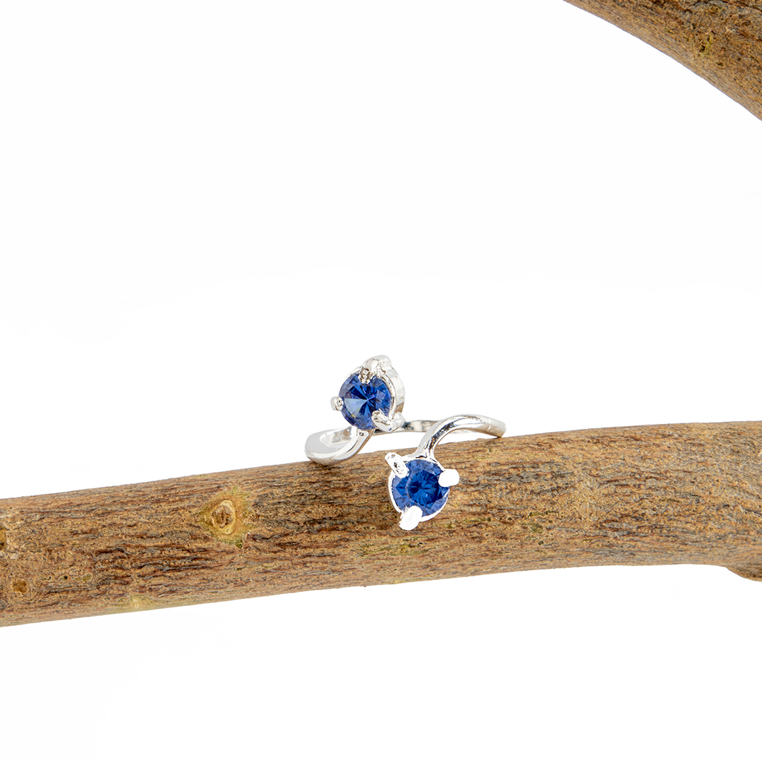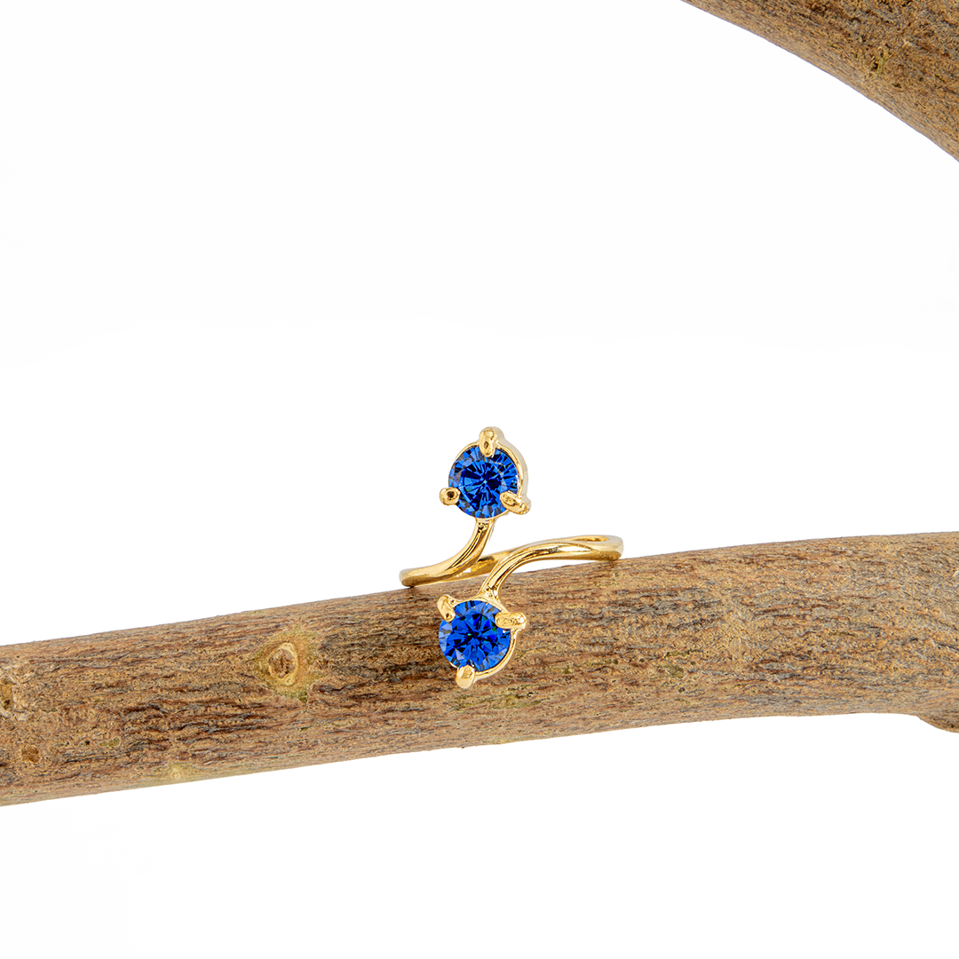 Anel 2 Cristais Artificiais Ágata Azul Banhado