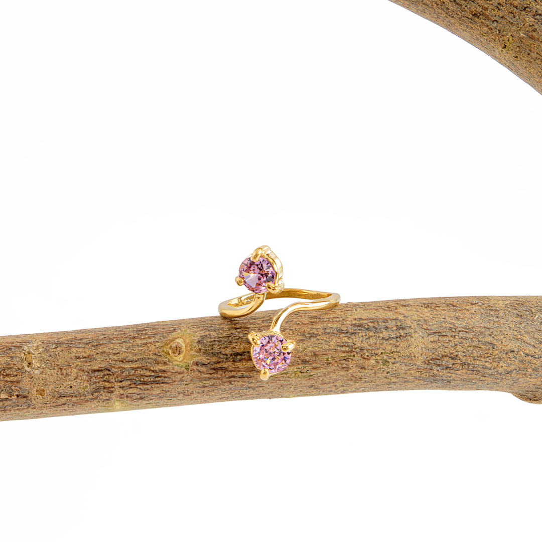 Anel 2 Cristais Artificiais Quartzo Rosa Banhado