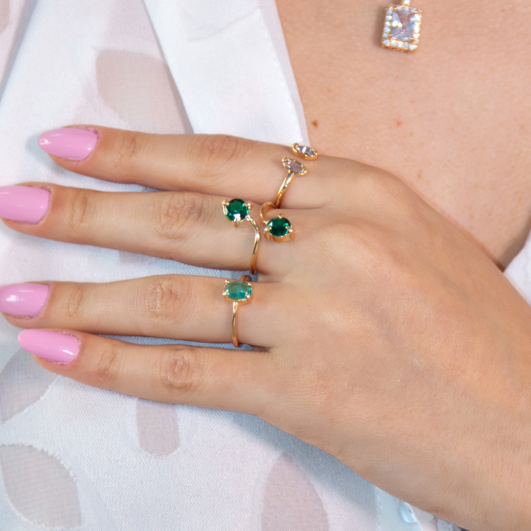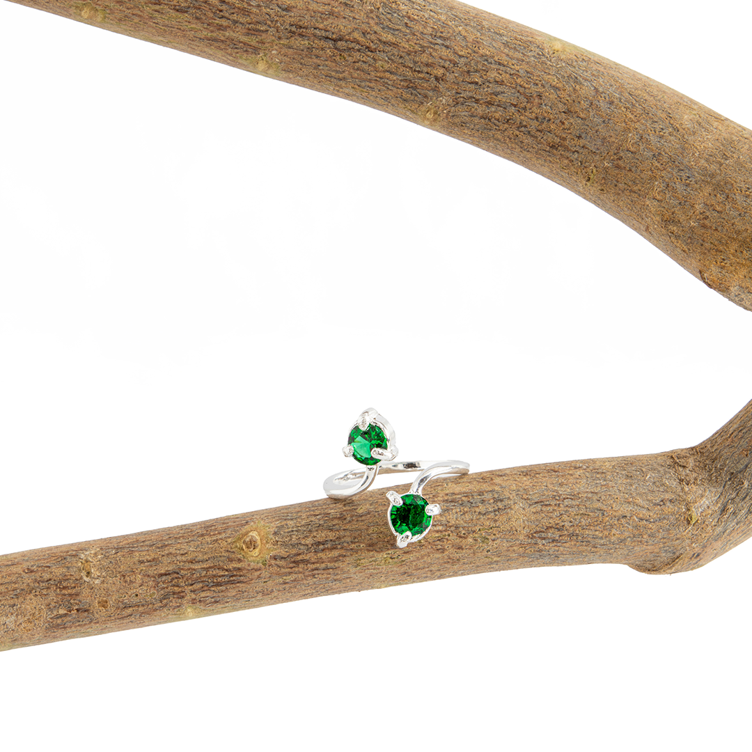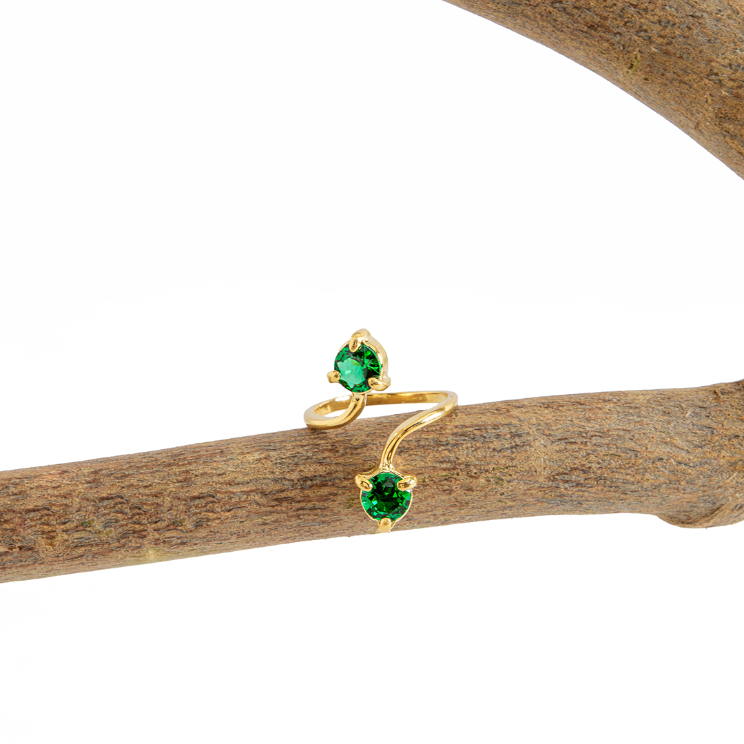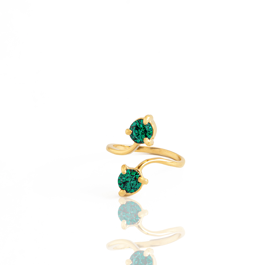 Anel 2 Cristais Artificiais Quartzo Verde Banhado