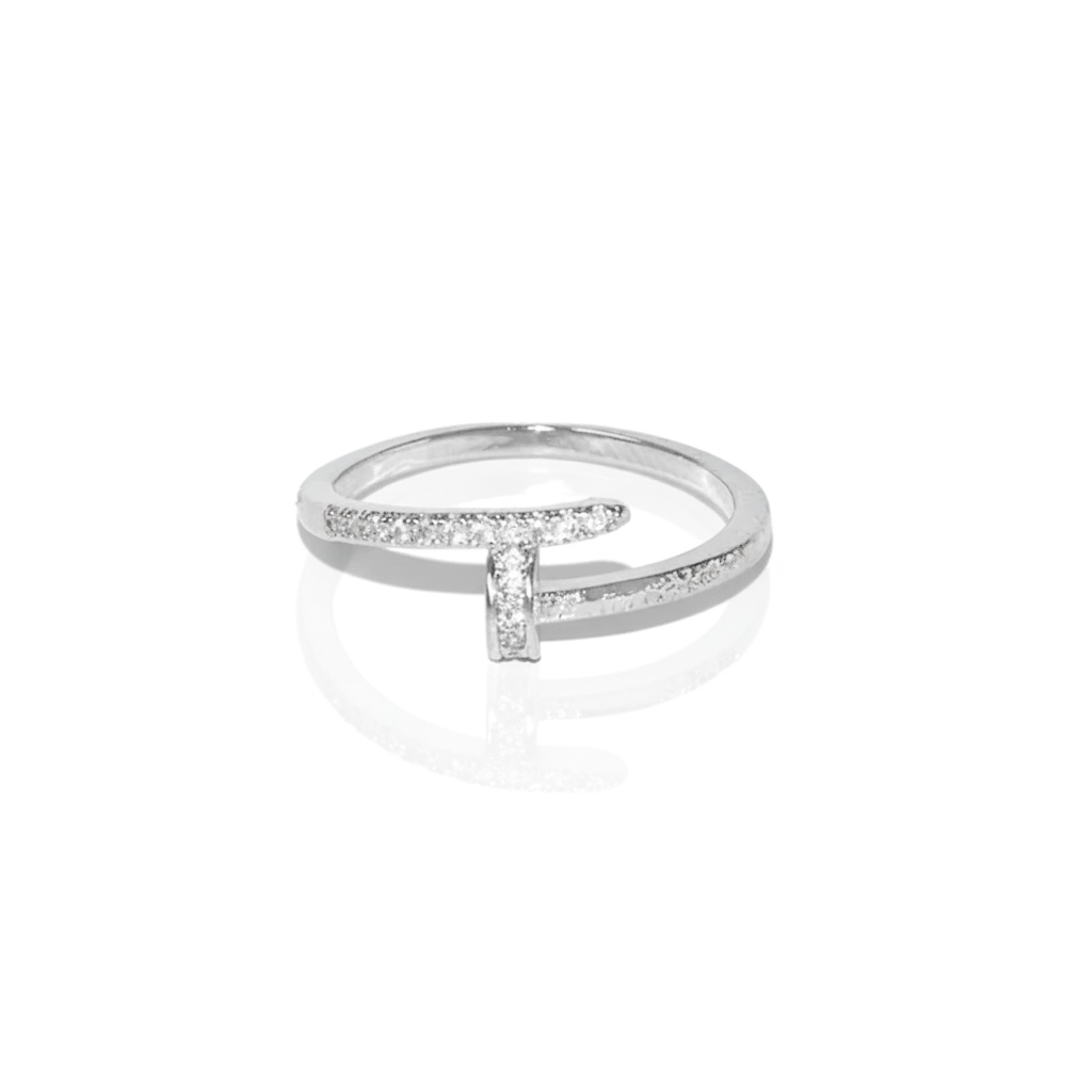 Anel Inspiração Prego Cravejado de Zircônia Banhado A Prata