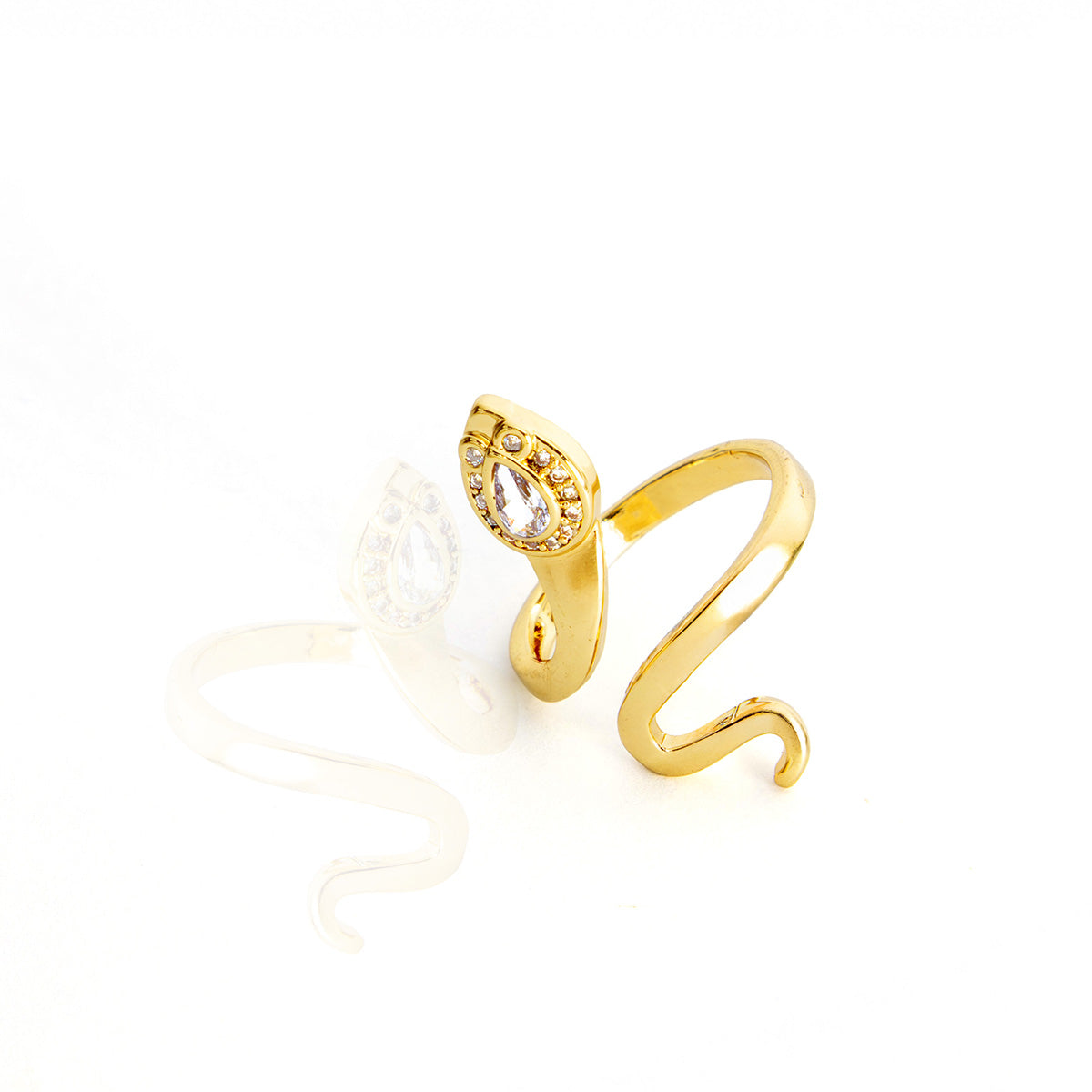Anel Orgânico Regulável Snake Com Zircônias Cravejada