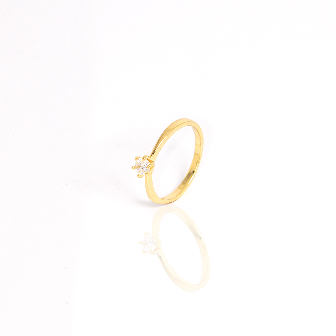Anel Solitário Redondo Banhado A Ouro
