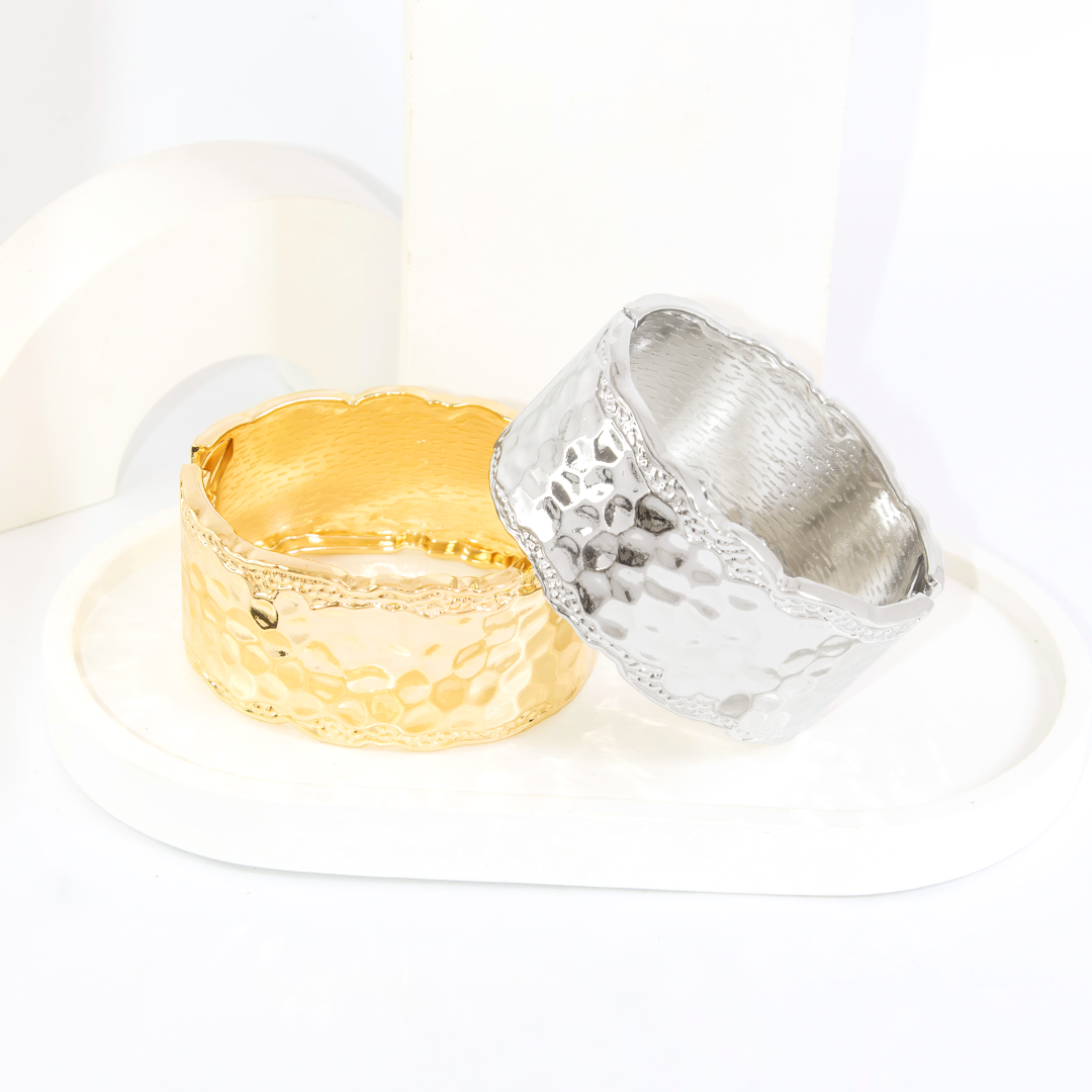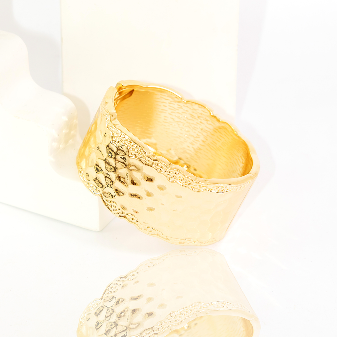 Bracelete Grosso Ondulado Borda Craquelada Acetinado Banhado