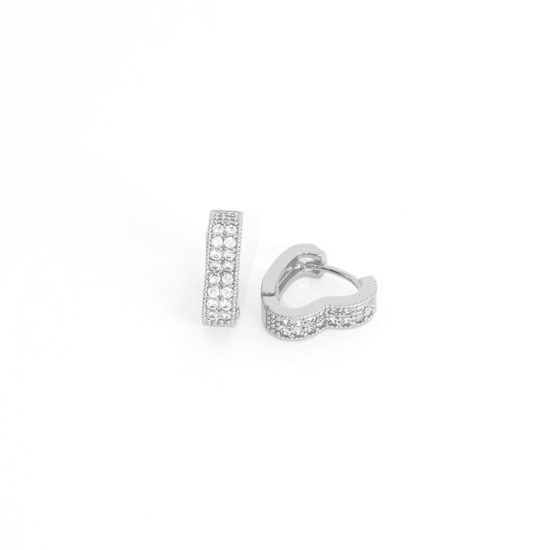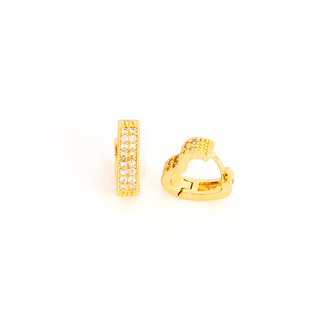 Brinco Argola Coração Duplo Cravejado Banhado