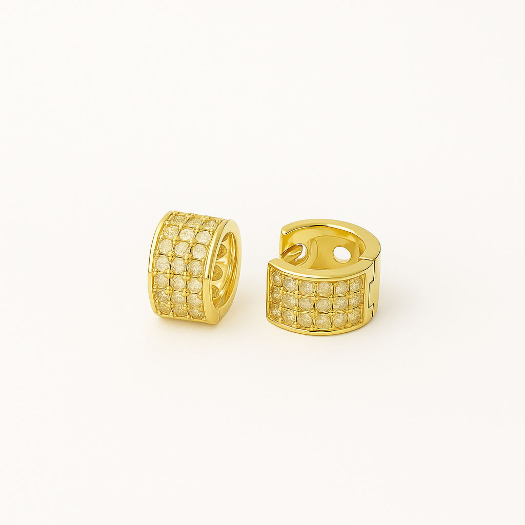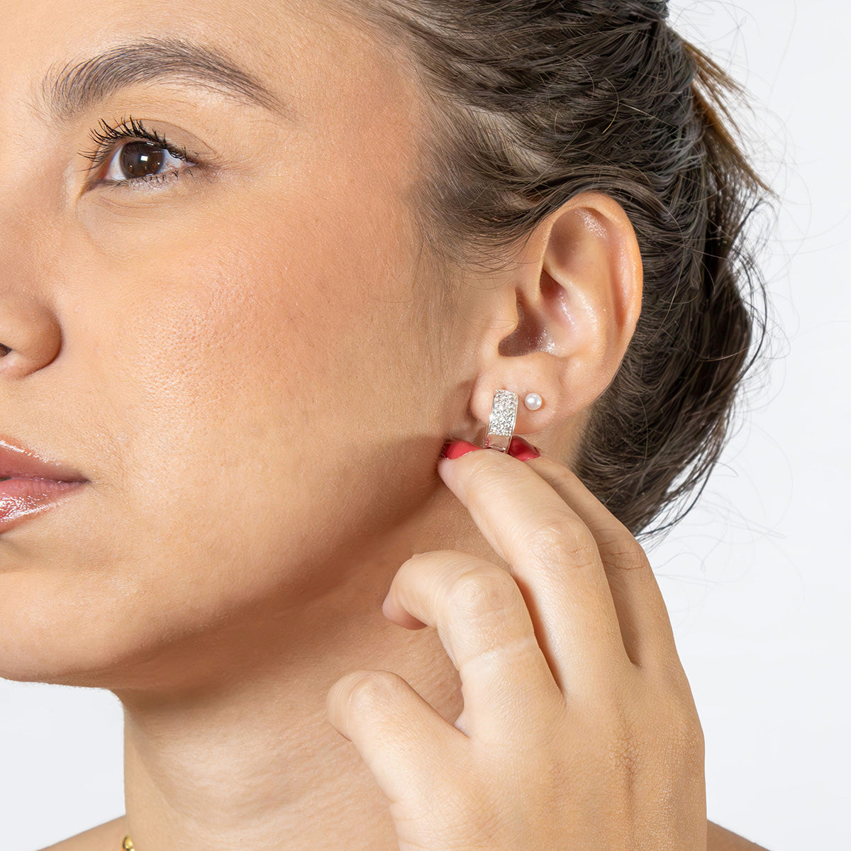 Brinco Argola Grossa com Fileiras Cravejadas em Zircônias