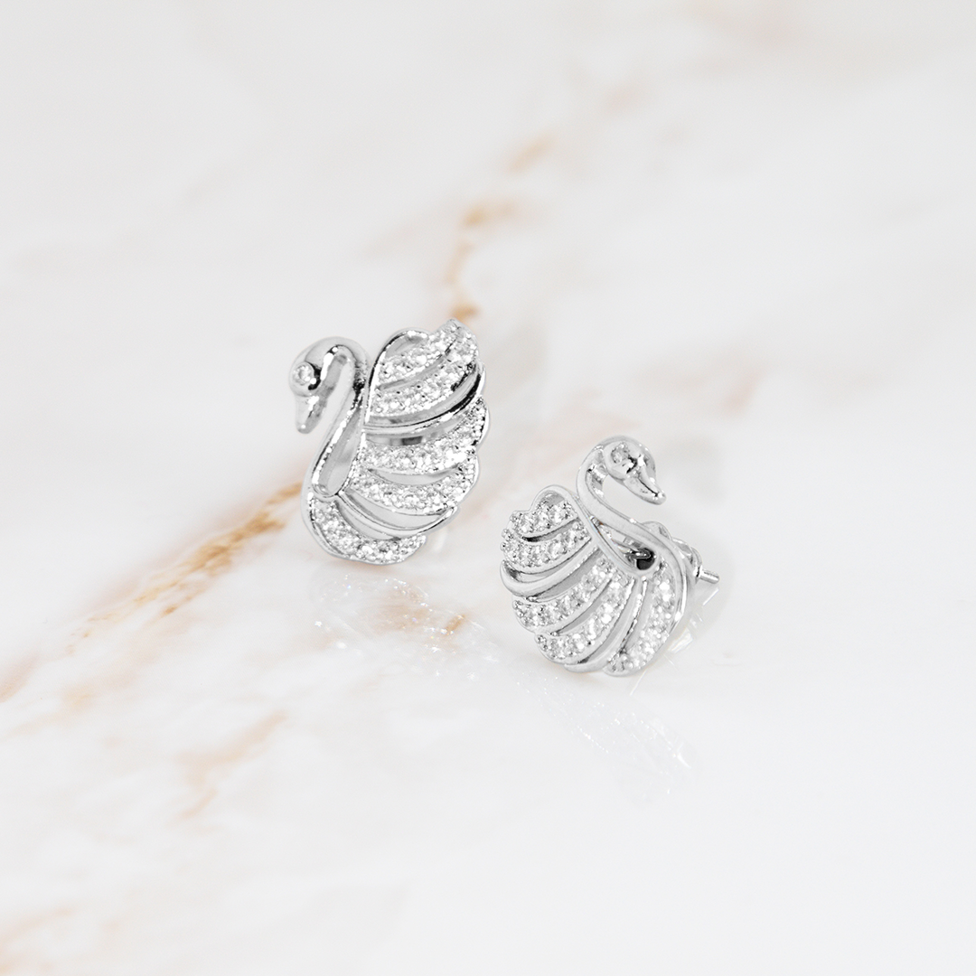 Brinco Cisne Brilhante Cravejado Banhado