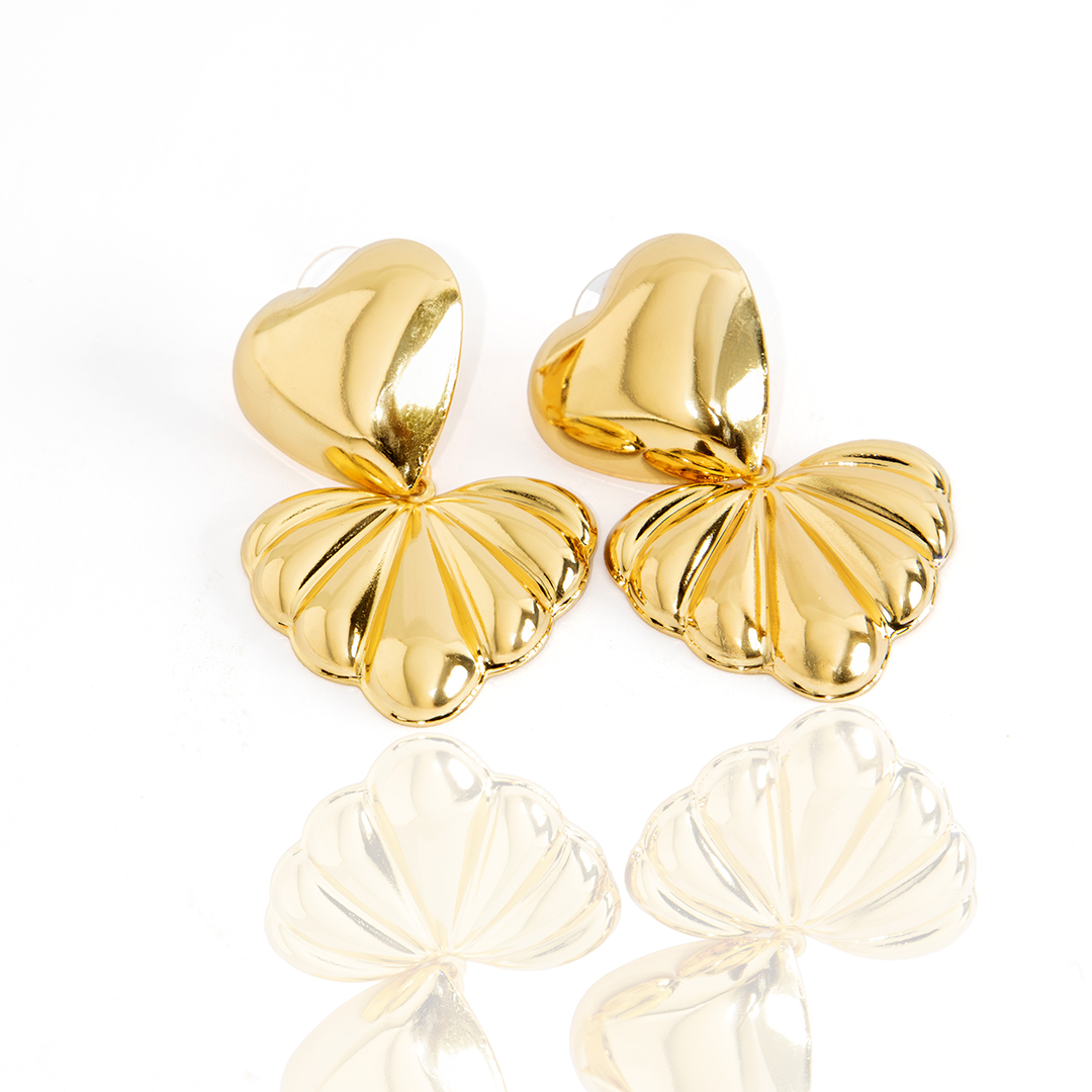 Brinco Coração Com Pétalas Texturizadas Banhado