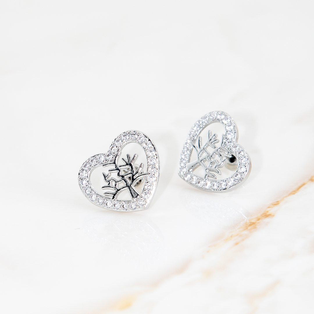 Brinco Coração Galho Cravejado Banhado