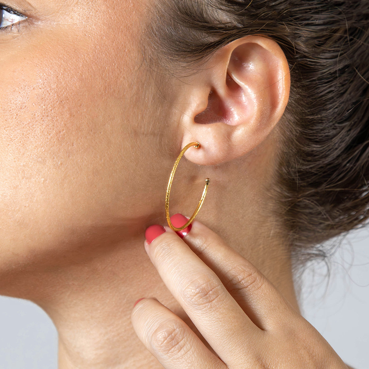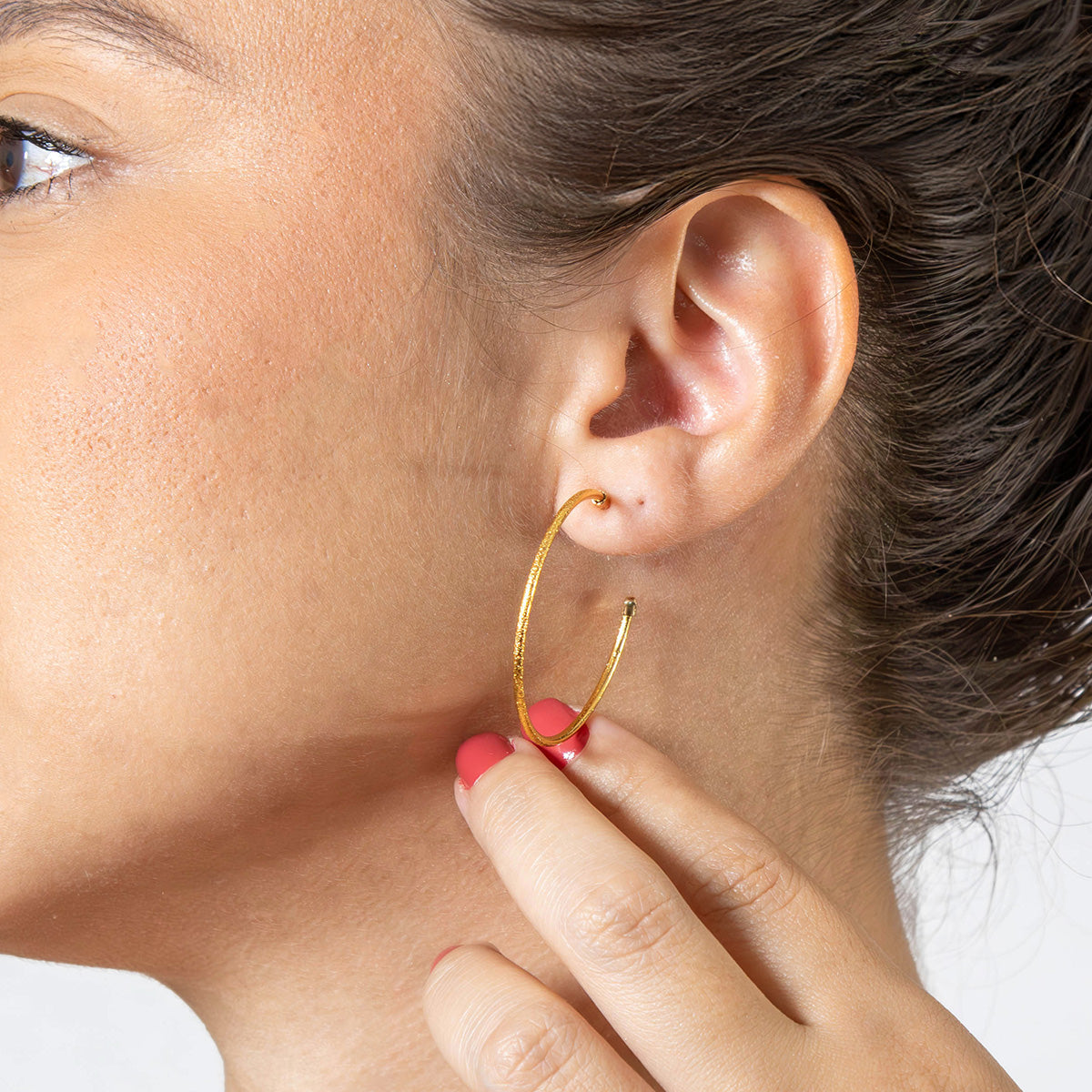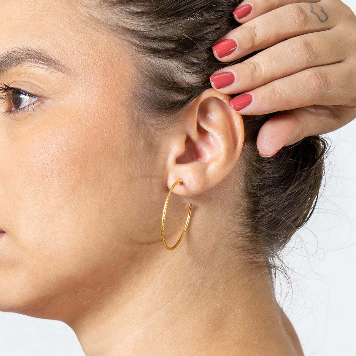 Brinco de Argola Fina Detalhada 3,7mm Banhado em Ouro