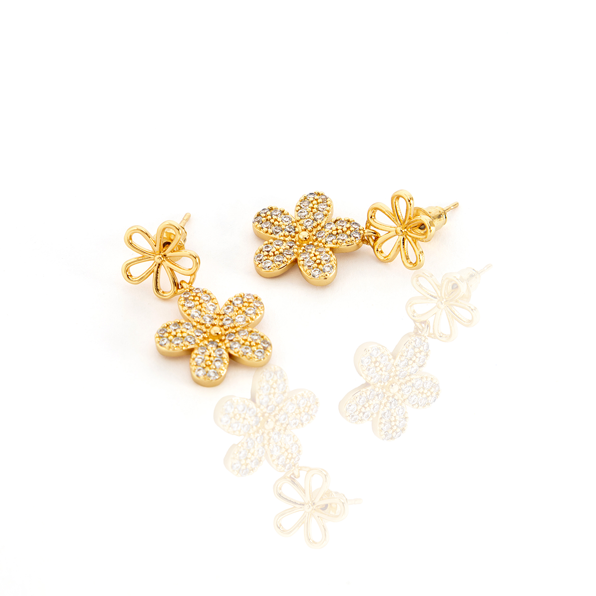 Brinco Duas Flores Cravejado Banhado
