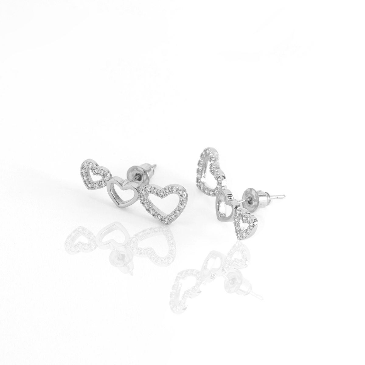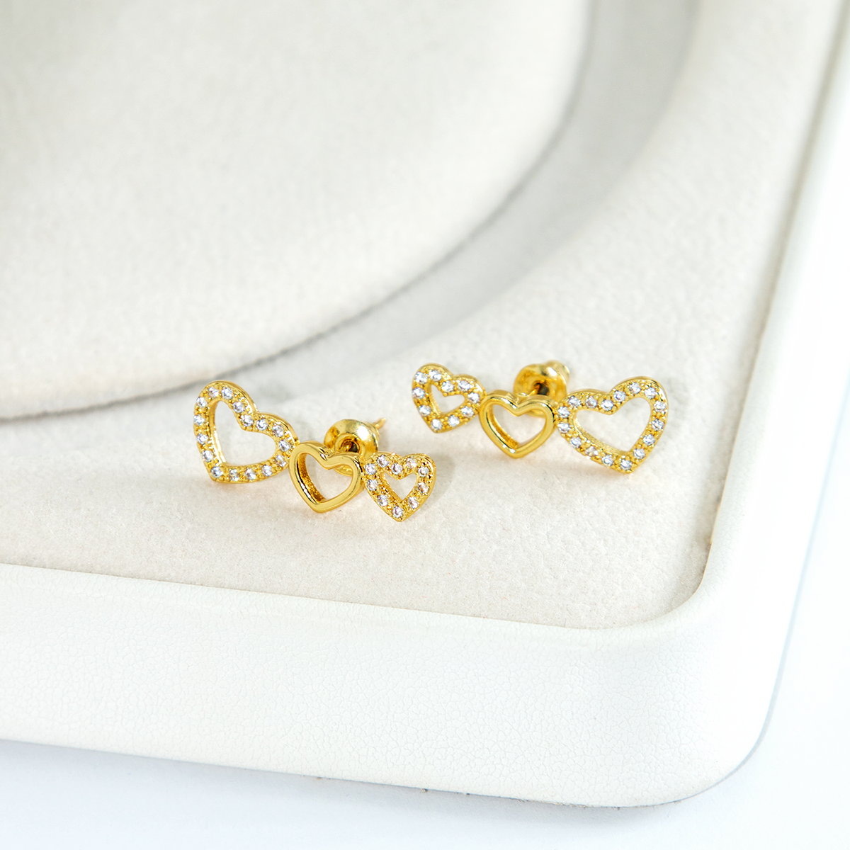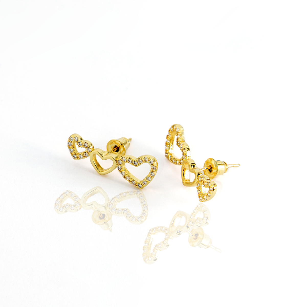 Brinco Duplo Coração Brilhante Cravejado Banhado