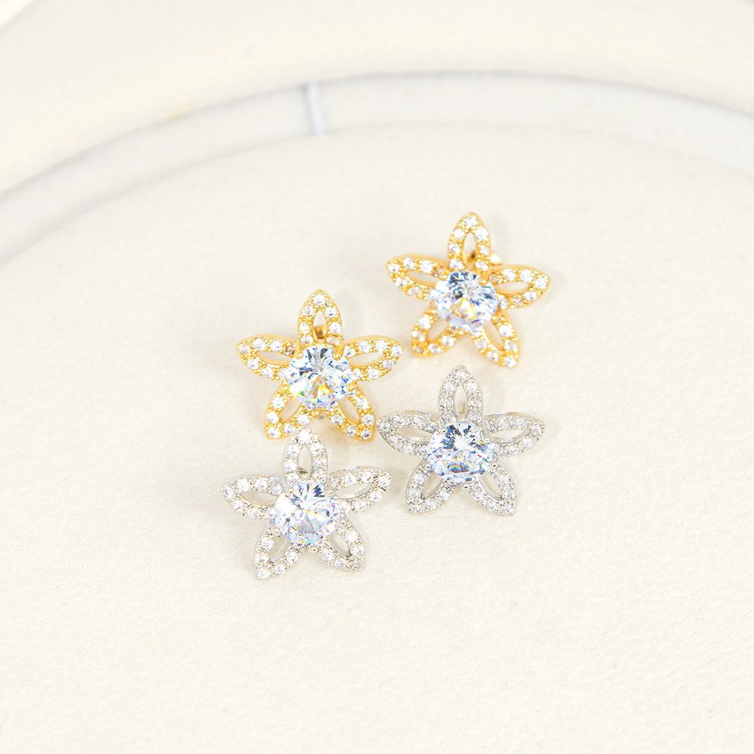 Brinco Flor Vazada com Zircônia Central Banhado