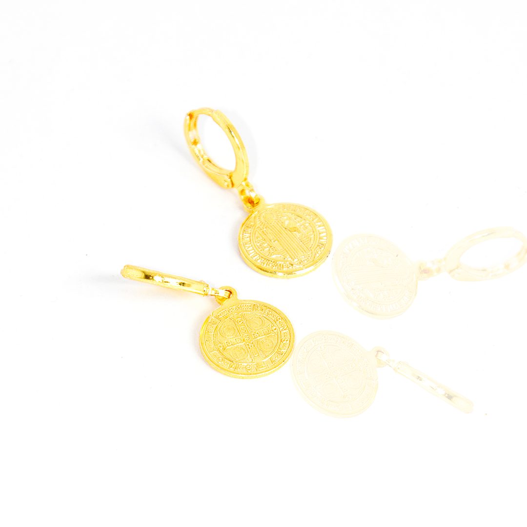Brinco Medalha De Sao Bento Banhado A Ouro