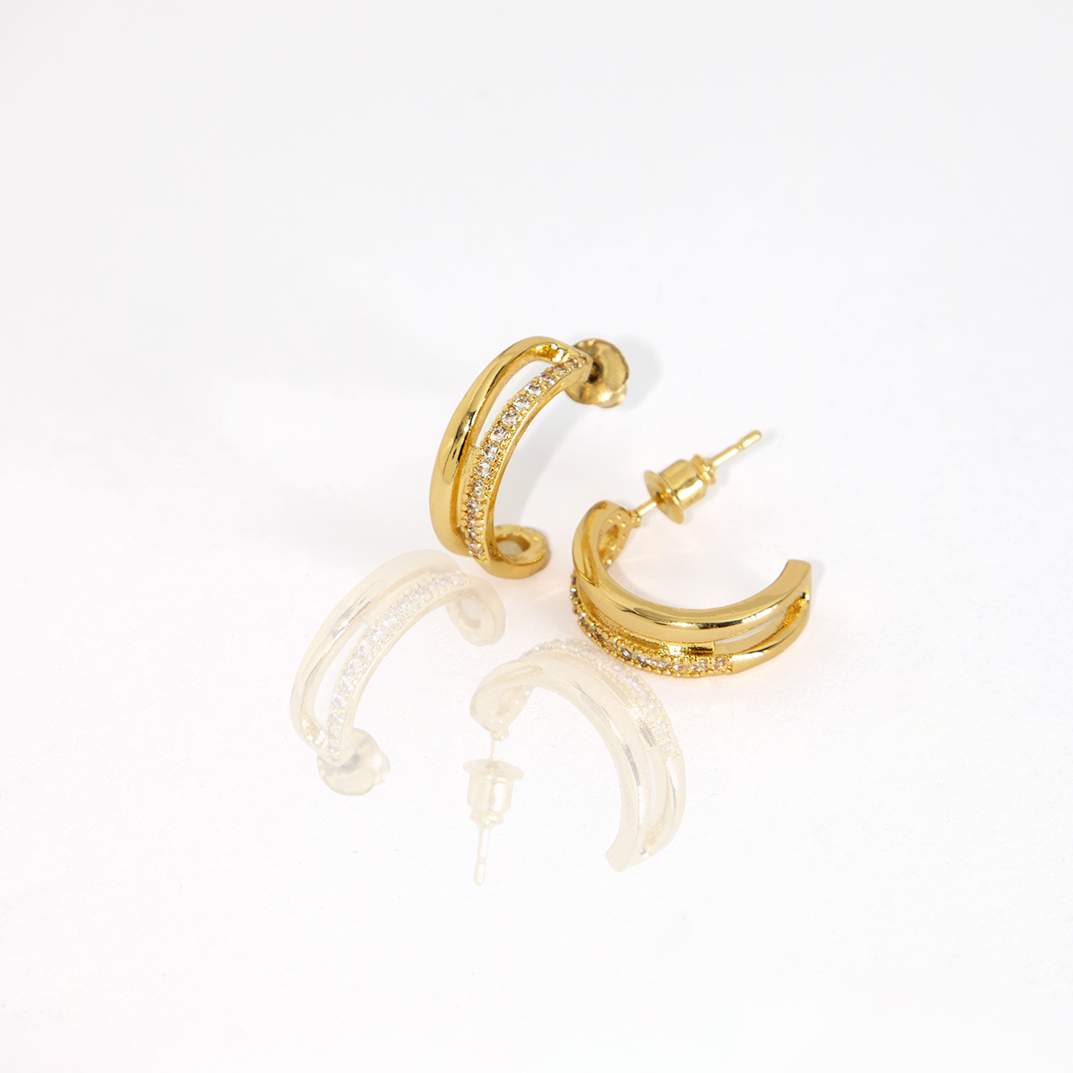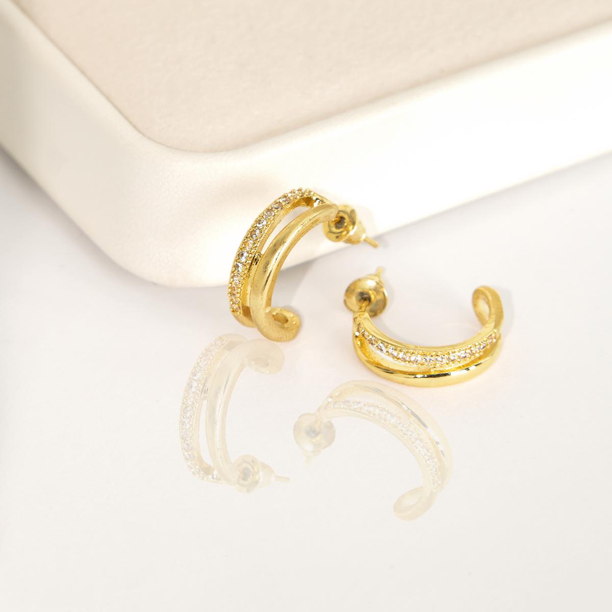Brinco Meia Argola Luxo Com Zircônias Banhado