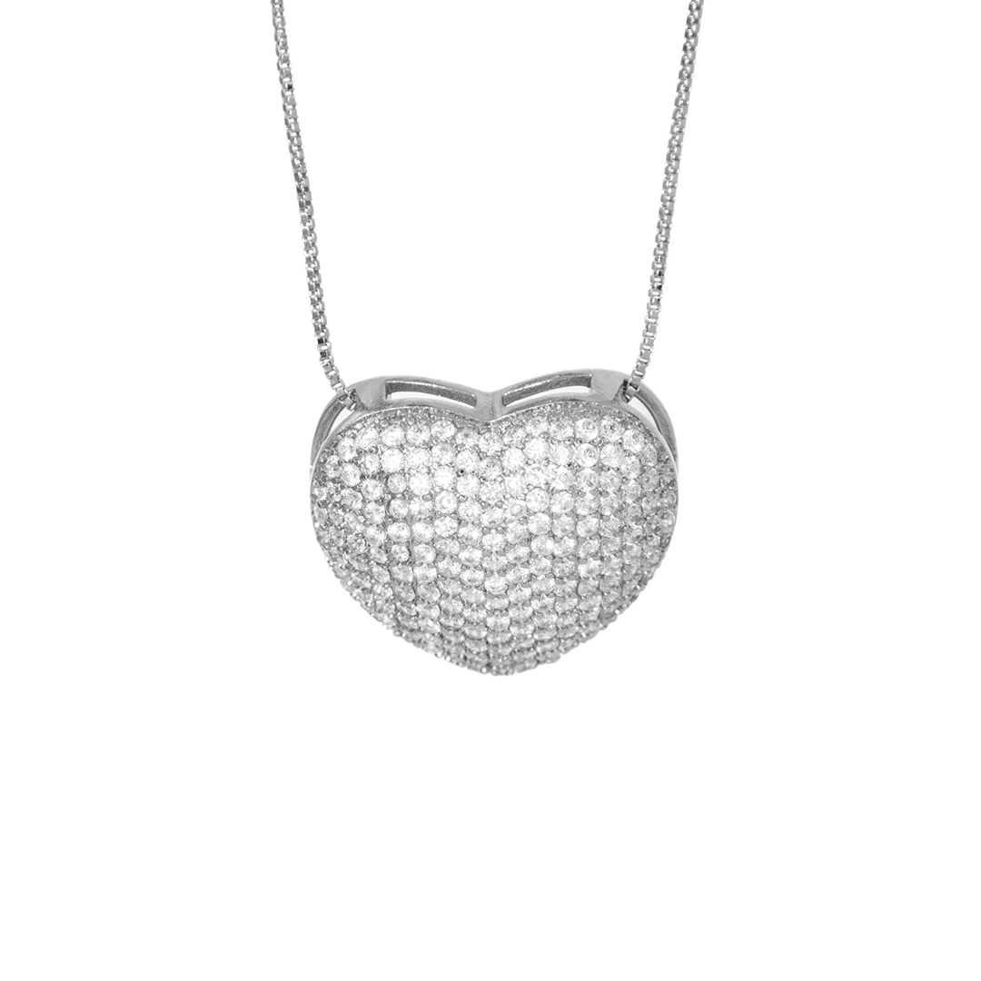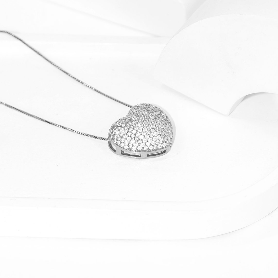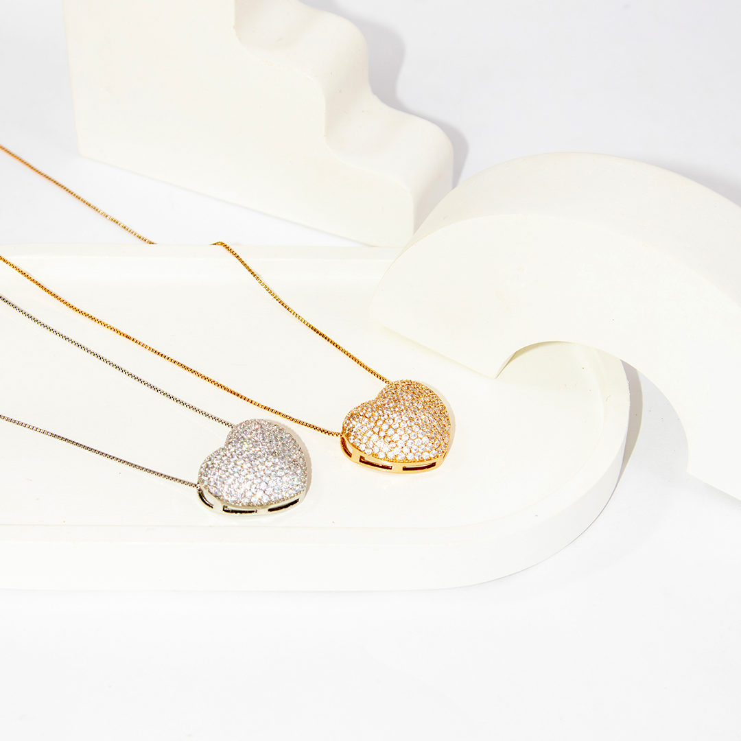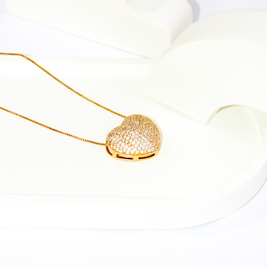 Colar Coração Delicado Cravejado Zircônia Banhado