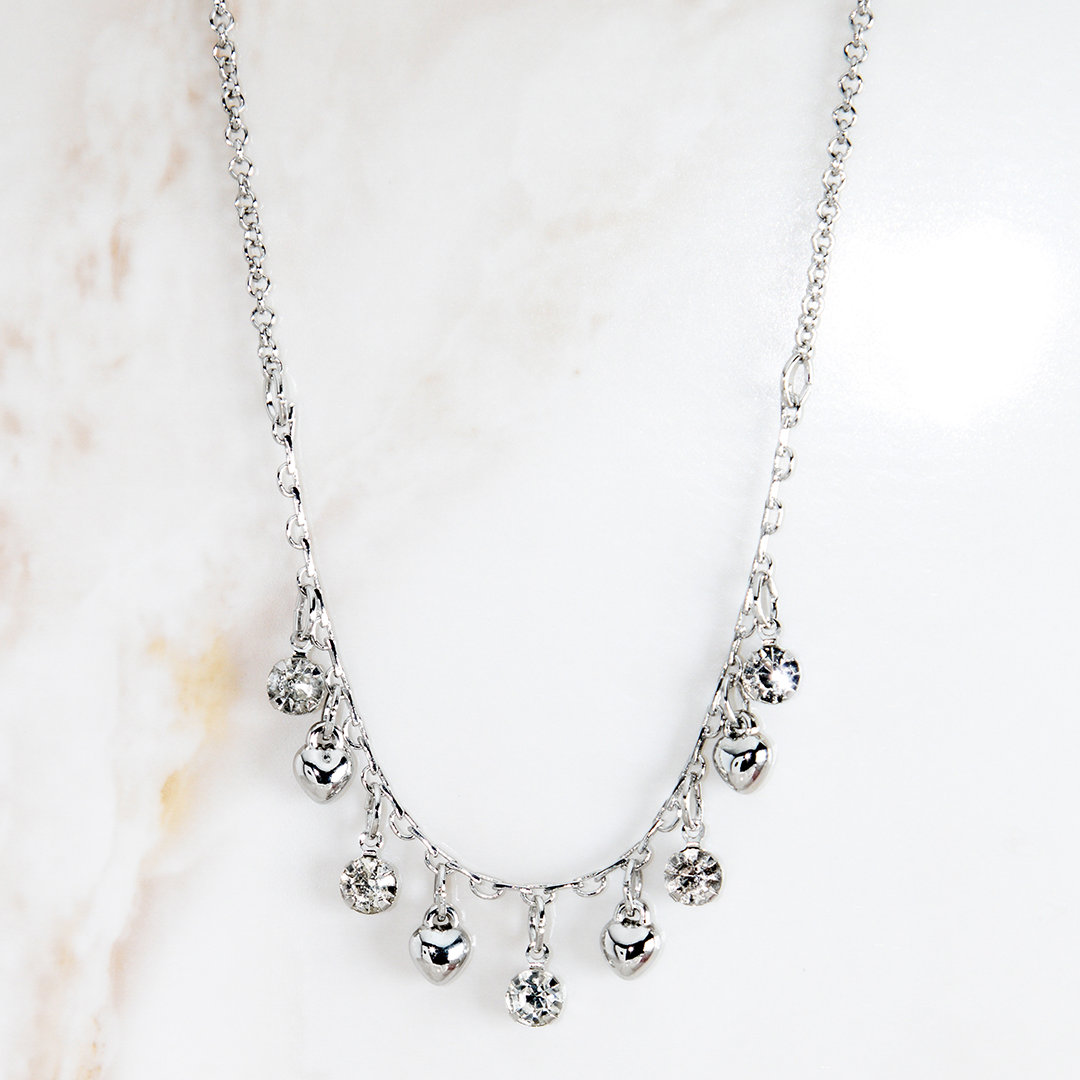 Colar Delicado Corações Com Zircônias Penduradas Banhado