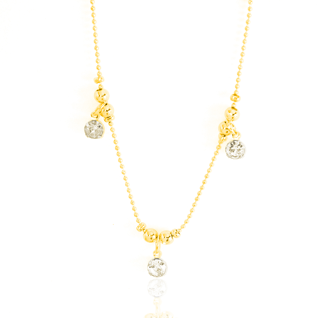 Colar Mini Esferas Com Cristais Pendurados Banhado