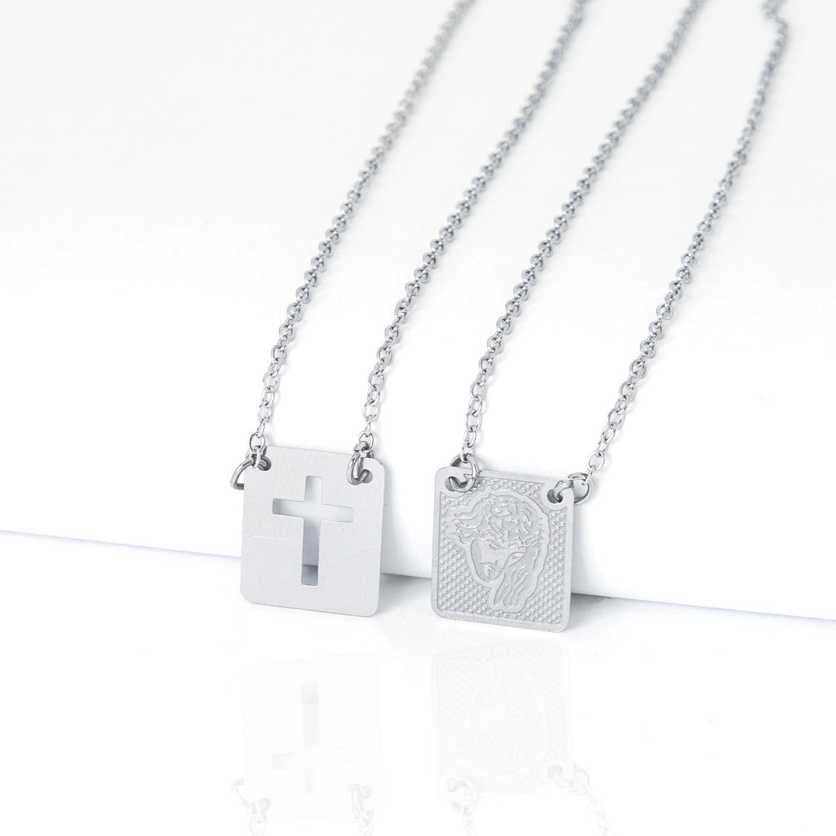 Escapulário Face Jesus com Cruz Vazada Aço inox
