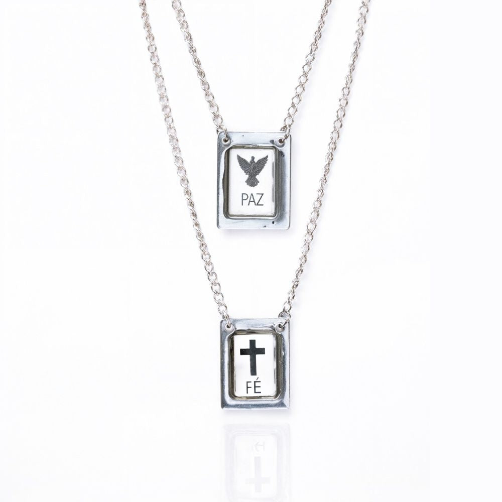 Escapulário "Fé e Paz" Aço Inoxidável 60Cm