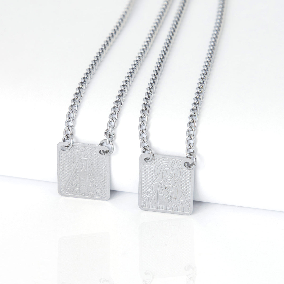 Escapulário Nossa S. Aparecida e Sagrado Coração Em Aço inox