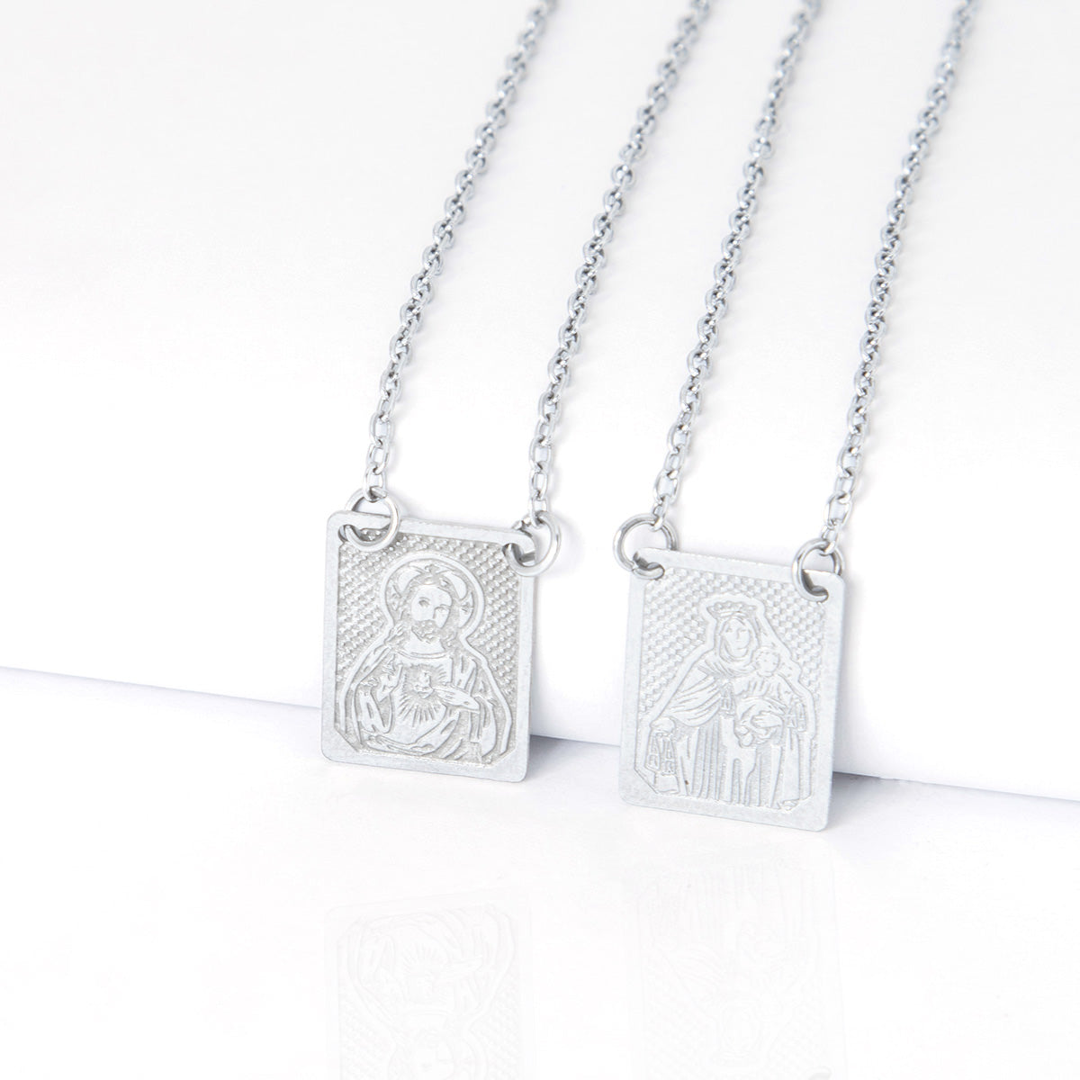 Escapulário Sagrado Coração de Jesus e Nossa S. do Carmo em Aço Inox
