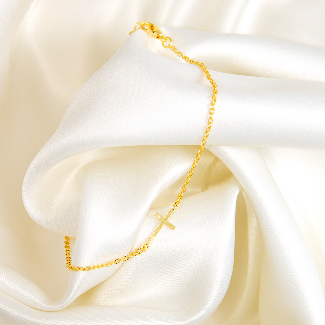 Pulseira Mini Cruz Lisa Banhada A Ouro