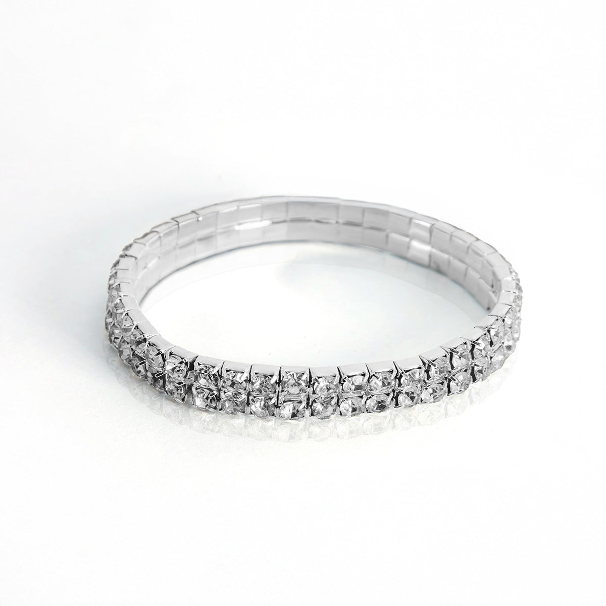 Pulseira Riviera Com Ajuste de Elástico Duas Fileiras Banhado em Prata